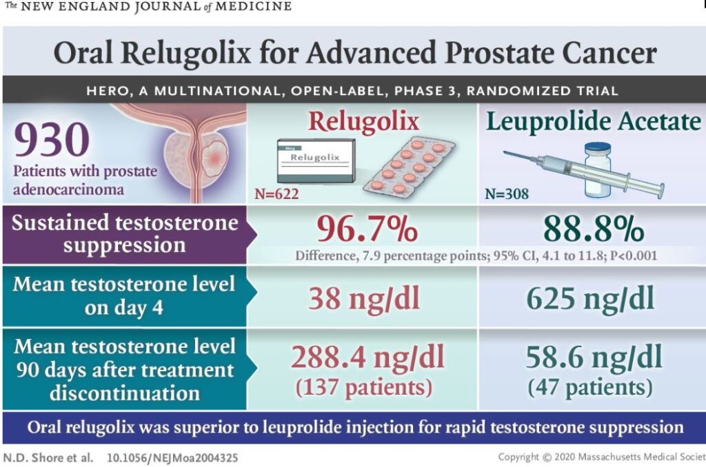 When considering ADT options, patients often choose between oral medications like relugolix and injectable luteinizing hormone-releasing hormone (LHRH) agonists such as leuprolide (Eligard). The main advantage of the relugolix is that it has a much better testosterone recovery rate and timeline after treatment.